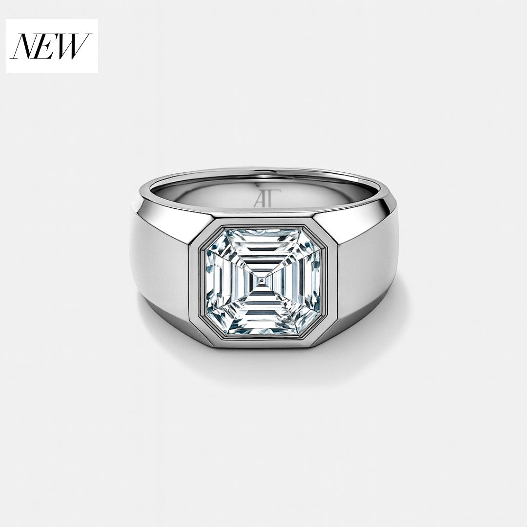 A bold new era for Andrew Timothy. The mens solitaire band is a symbol of AT's exquisite craftsmanship and modern style. With its bold clean lines, the solitaire band is expertly crafted in 18K rose gold and features a stunning asscher cut diamond.